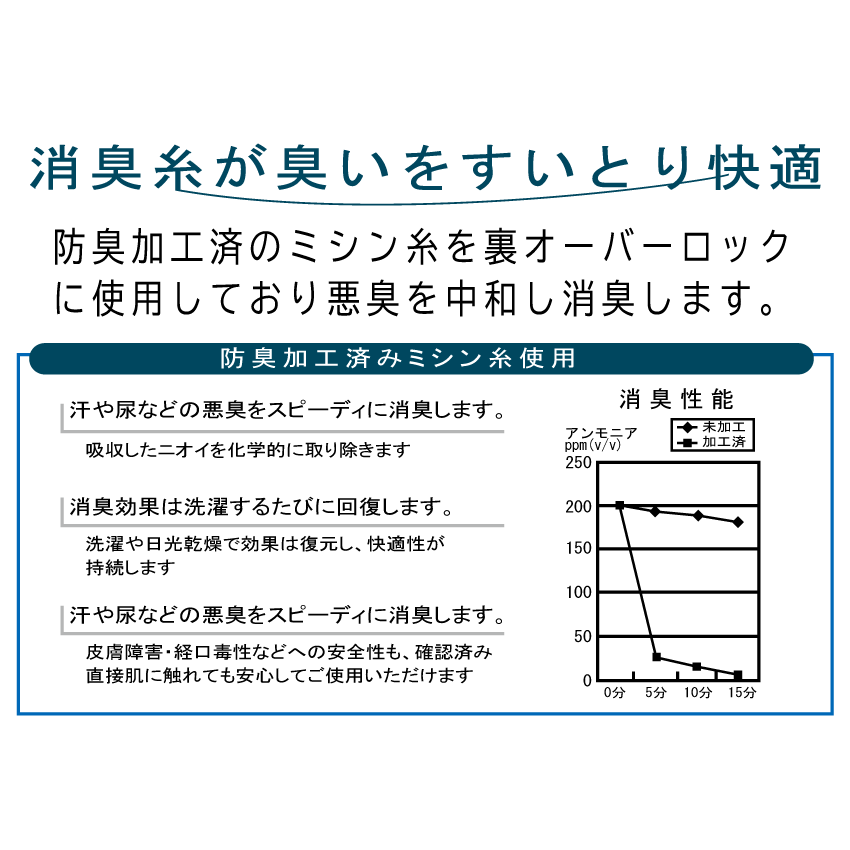 水分( 汗) を素早く吸い上げ拡散し、蒸散させるのでベタつき感のない爽やかな肌触りが持続します。
